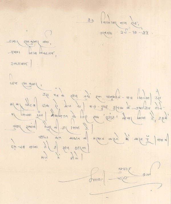प्रख्यात साहित्यकार डॉ. रामकुमार वर्मा की महत्वपूर्ण सामग्री दिनांक