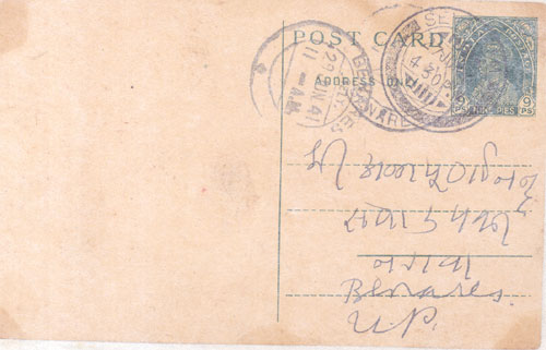 अपने पत्र में गांधी जी ने वादा किया है कि अन्नपूर्णानन्द जी ने जो किताब उन्हें भेजी है, वे उसे पढ़ने का प्रयास करेंगे। गांधी जी ने अन्नपूर्णानन्द के बड़े भाई संपूर्णानन्द का हालचाल भी पूछा है। यह पत्र 26 जून 1941 को सेवाग्राम से लिखा गया है। पोस्ट कार्ड पर गांधी जी ने स्वयं ' ही 'पता' लिखा है। पत्र हू-ब-हू इस प्रकार है: