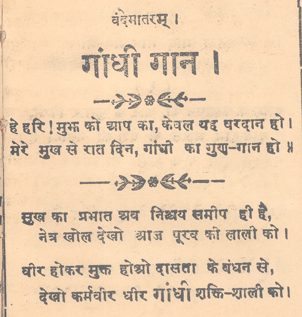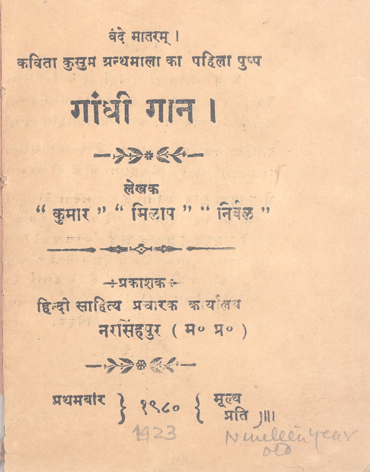 पुस्तक की पृष्ठभूमि यह है कि साहित्य प्रचारक कार्यालय के स्वामी नाथूराम रेजा नें गांधी जी पर 'विश्व मोह लीनो है' पंक्ति पर समस्यापूर्ति करने को कहा। 'कुमार' (रामकुमार वर्मा), 'मिलाप तथा निर्बल' की रचनाएं उन्हें पसंद आई और गांधी नामक पुस्तिका सामने आई। राष्ट्रीय आंदोलन से जुड़े साहित्य की परंपरा में इस पुस्तिका का निश्चित ही ऐतिहासिक योगदान माना जाएगा।